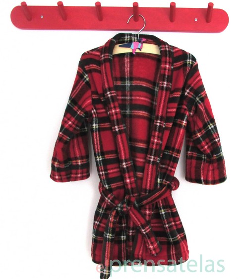 Es un patrón rápido de coser y está en tallas desde los 18 meses a los 8 años, tenemos bata para rato... Como os he dicho la he hecho en coralina y, aunque es muy agradable y caliente, dudo mucho que vuelva a comprar este tejido otra vez. Es la primera vez que lo uso y, no se por qué, pensé que sería tipo polar que apenas se despelucha, pero todo lo contrario, hasta que remallé todos los bordes me salía pelusa de todos los rincones.