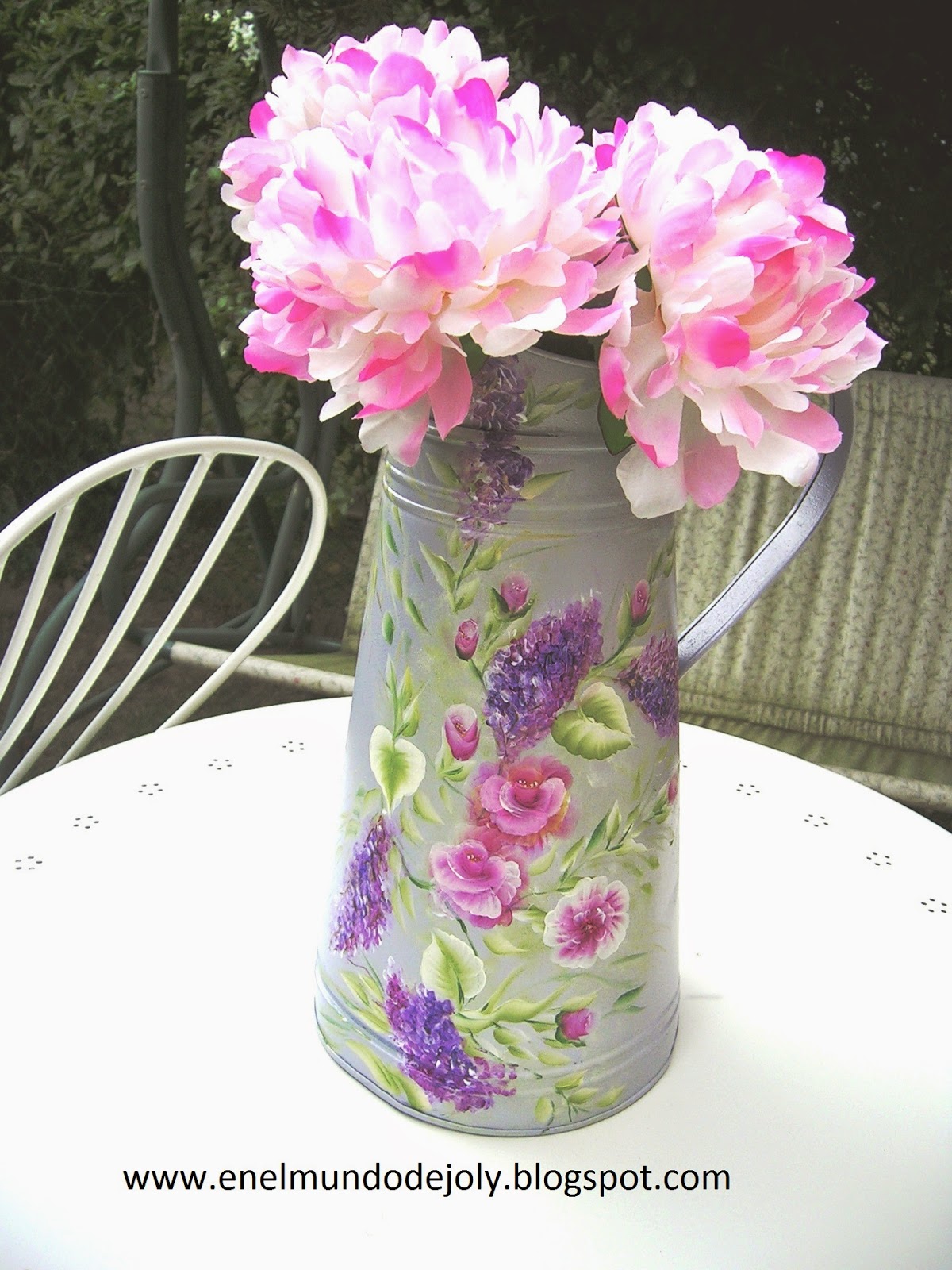 Le di con spray a toda la superficie. Siempre se lo doy poco a poco dejando cinco minutos entre capa y capa para evitar chorretones y funciona muy bien. Este color me venia de maravilla para las flores que le quería hacer y comencé a pintarlas como siempre a mano alzada....lo que vaya saliendo!!