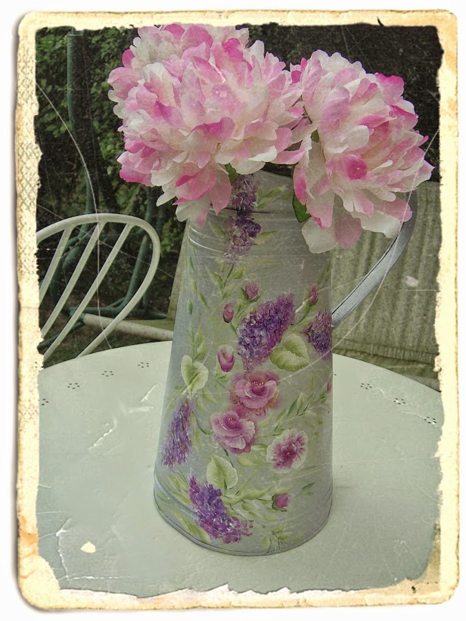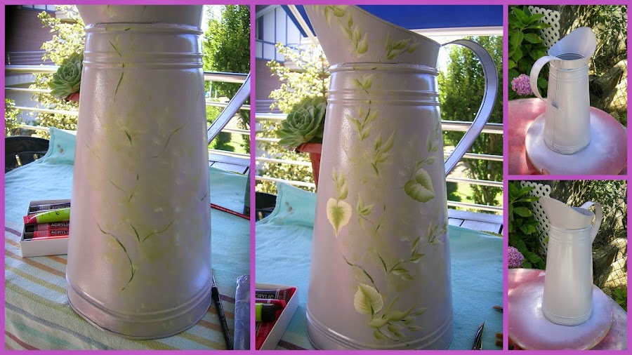 Hoy os traigo el cambio que le he hecho a una jarra que me regalo mi hermano hace muchisimo tiempo. Lo he tenido en el jardín así que imaginaros como estaba el pobre. El oxido se lo comía y algún golpetazo que otro tenia por ahí,...con paciencia y buenas intenciones decidí cambiarle el look y esto es lo que me ha salido, ya me contareis vuestra opinión...comenzamos!!