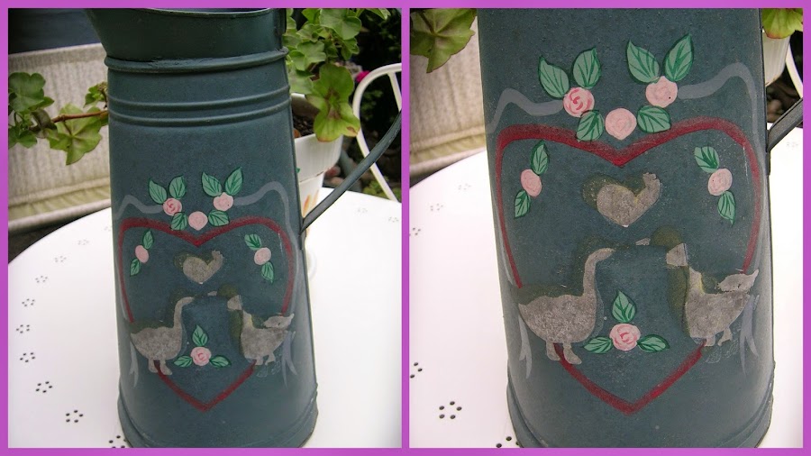 Aquí tenéis la jarra. La lije mucho para quitar sobre todo los relieves del corazón y los patitos.