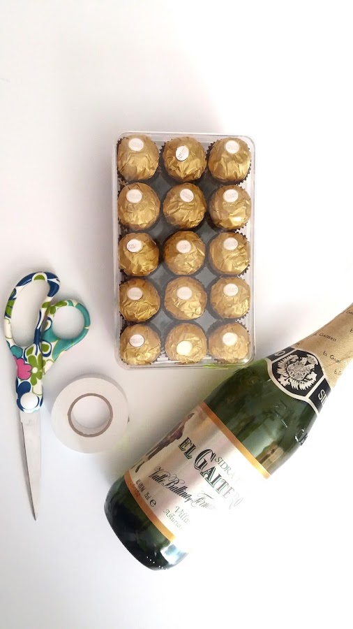Es tan divertido como ir pegando Ferreros a una botella, ya sea de sidra, cava o incluso vino ¡¡la bebida que más os guste, piripis!!!!