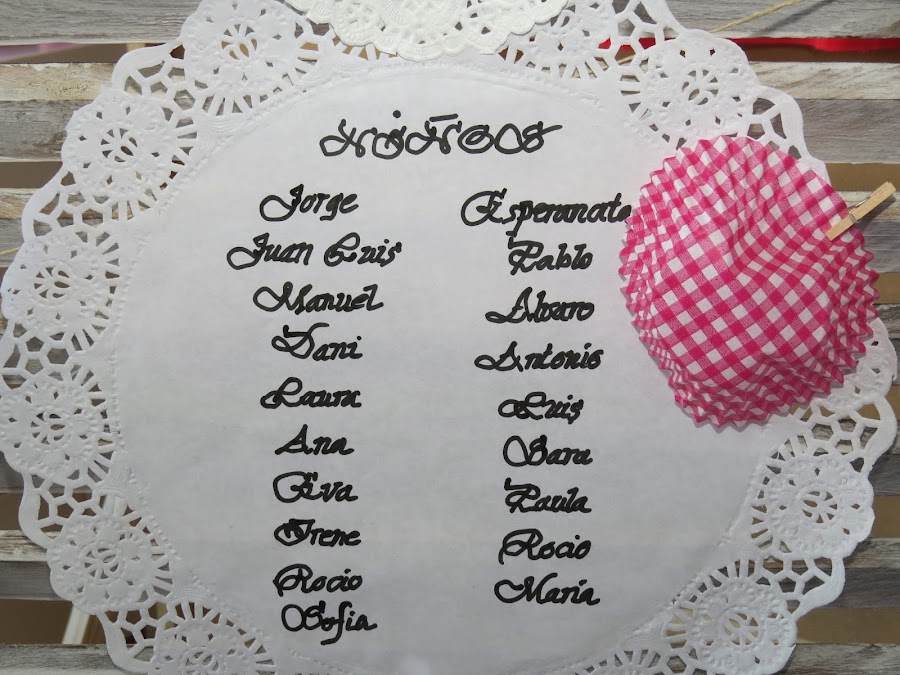 El sitting, con blondas de pastel y cápsulas de magdalenas en un biombo de madera chulísimo.