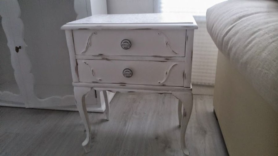 ...el caso es que a día de hoy aun no ha aparecido así que llegue a la conclusión de que si estábamos condenadas a convivir... Por lo menos lo hiciera como se merece... La pinté con la chalk paint blanco pire de annie sloan que compre en doble a de scrap y la tapa la estarci con una plantilla preciosa que compré en la misma tienda