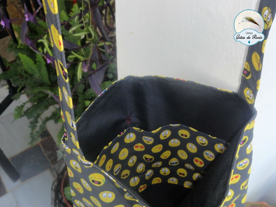 Se trata de una tote bag para mi sobrina que cumplió 16 años el mes pasado. Pero no se lo regalé yo, sino mi hermana, que la quiere mucho y me dijo: hazle un regalo original a Laura para su cumpleaños, algo que la sorprenda. Y yo, que no mucho antes había visto esta tela en Entretelas patchwork le dije: lo que sea, pero con esta tela.