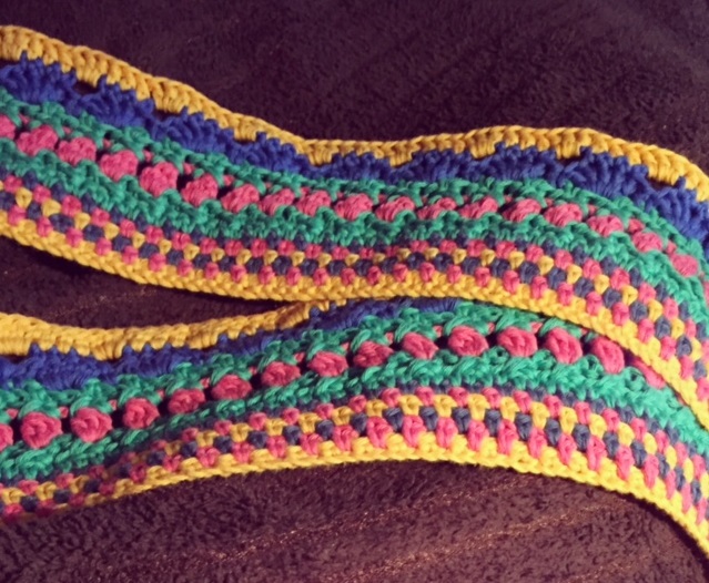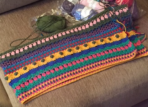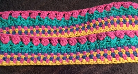 Estaba encantada con mi manta y a la espera de la siguiente clase hice una fila de punto garbanzo
