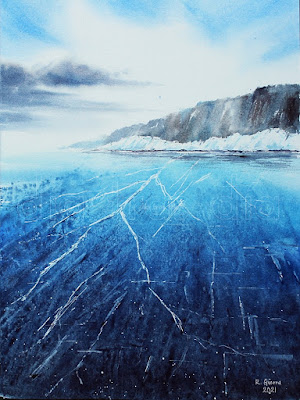 Como os contaba, hace unas semanas el motivo que pintó en su acuarela fue una imagen del lago Baikal, en Rusia. Situado en Siberia, es la reserva de agua dulce más grande del mundo. Y las imágenes que de allí podemos ver son realmente espectaculares.