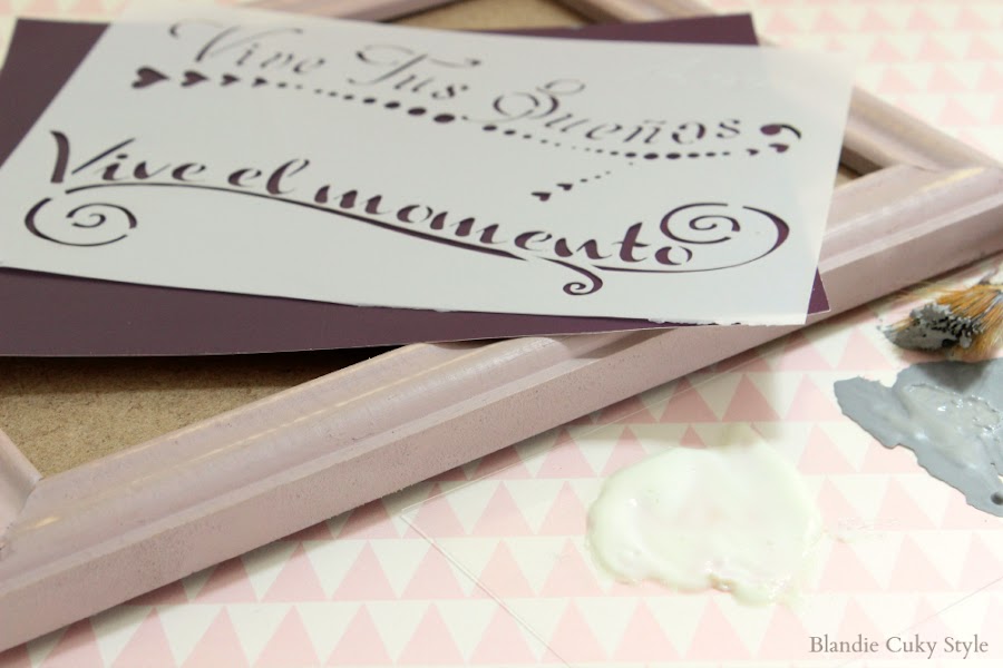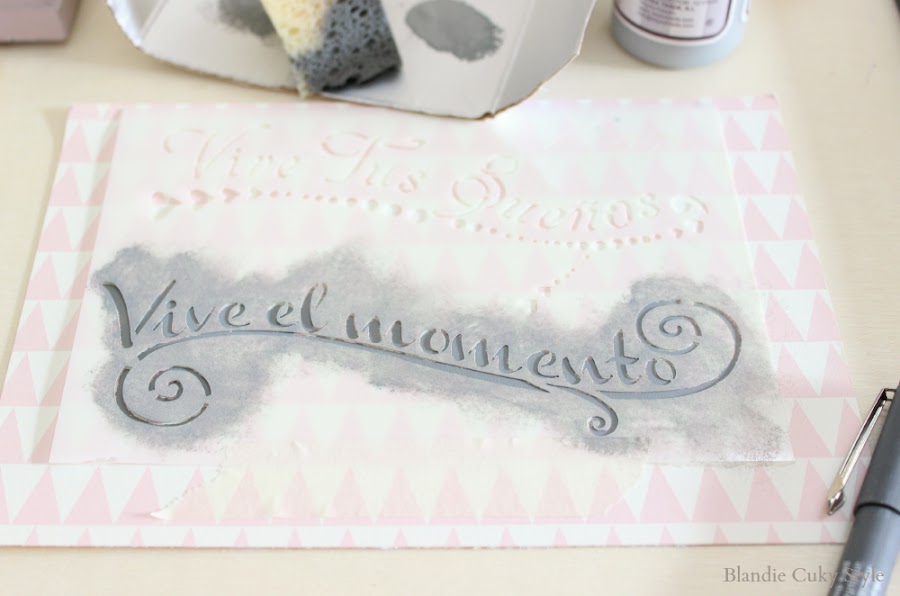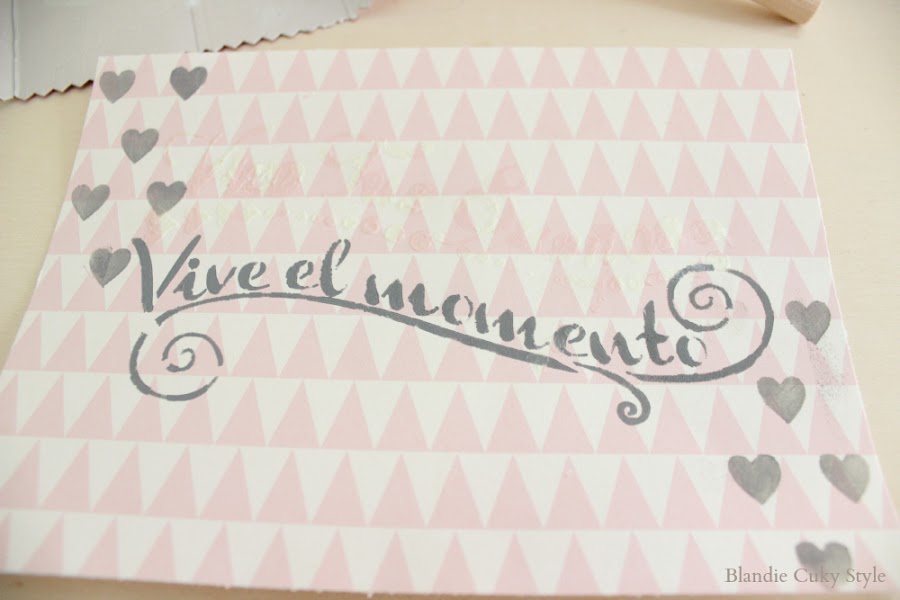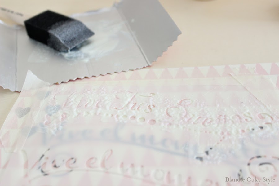 Para empezar, elige una cartulina que te guste al ser posible de color claro, para que el efecto brillo fluorescente se vea bien. Y, un par de stencils con la decoración o frases que creas.