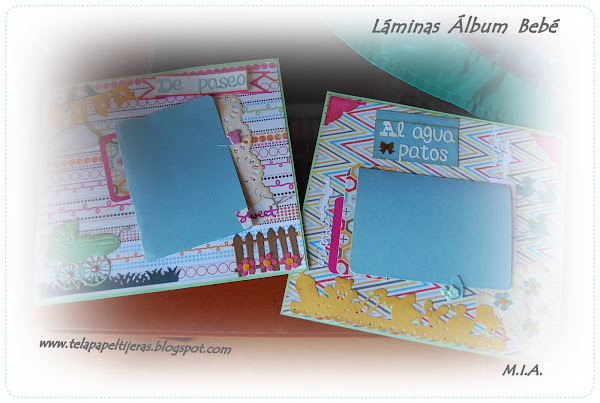 Estas dos láminas están hechas para un álbum conjunto que hemos hecho unas cuántas escraperas para una futura y feliz mamá...