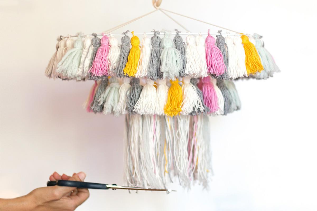 Cuanto más tupida quieras la lámpara, más borlas tendrás que hacer.