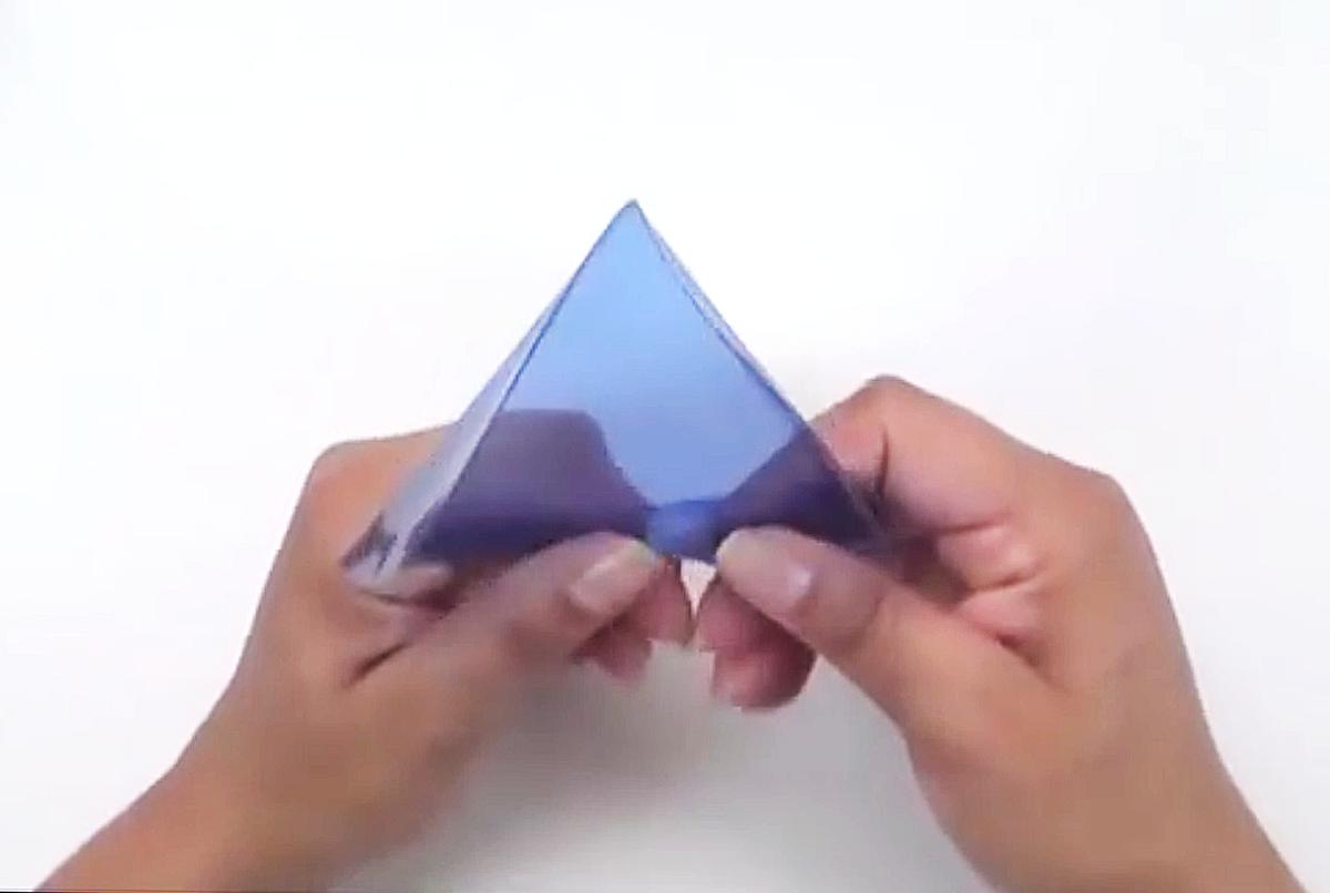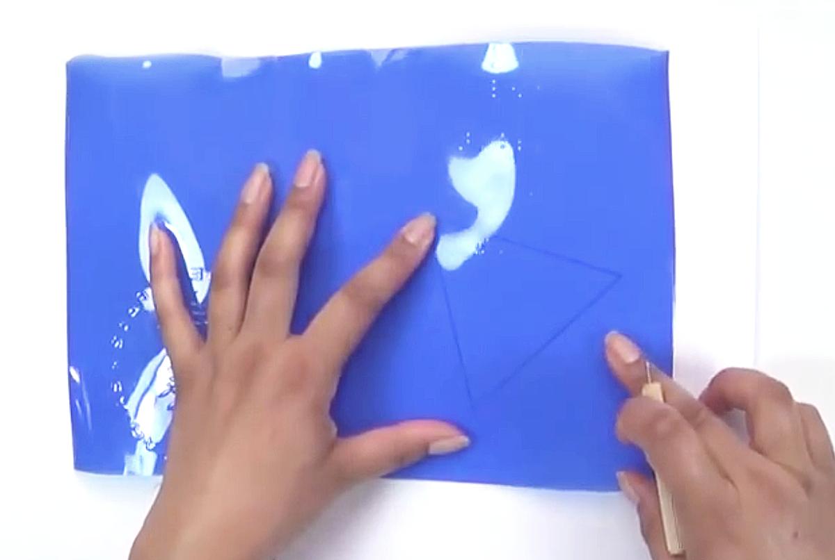 Dobla por la línea marcada en el interior de los círculos, formando el triángulo.