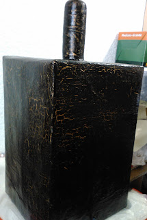 Se hace la Base con una caja a la que se perfora a ambos extremos para pasar un eje de pvc por donde pasará el sistema eléctrico que se consigue en cualquier ferretería del barrio. Se fija bien todo con cinta de enmascarar, posteriormente se hace comienza a ir pegando tiras de papel con cola o bien pasta de papel que se hace perfectamente con una batidora, cola y papel . Esto es importante por que de lo contrario la caja en el centro no tendrá resistencia y sobre todo no tendrá peso. Una vez conseguido el resultado encolar la caja y cubrir con papel seda.