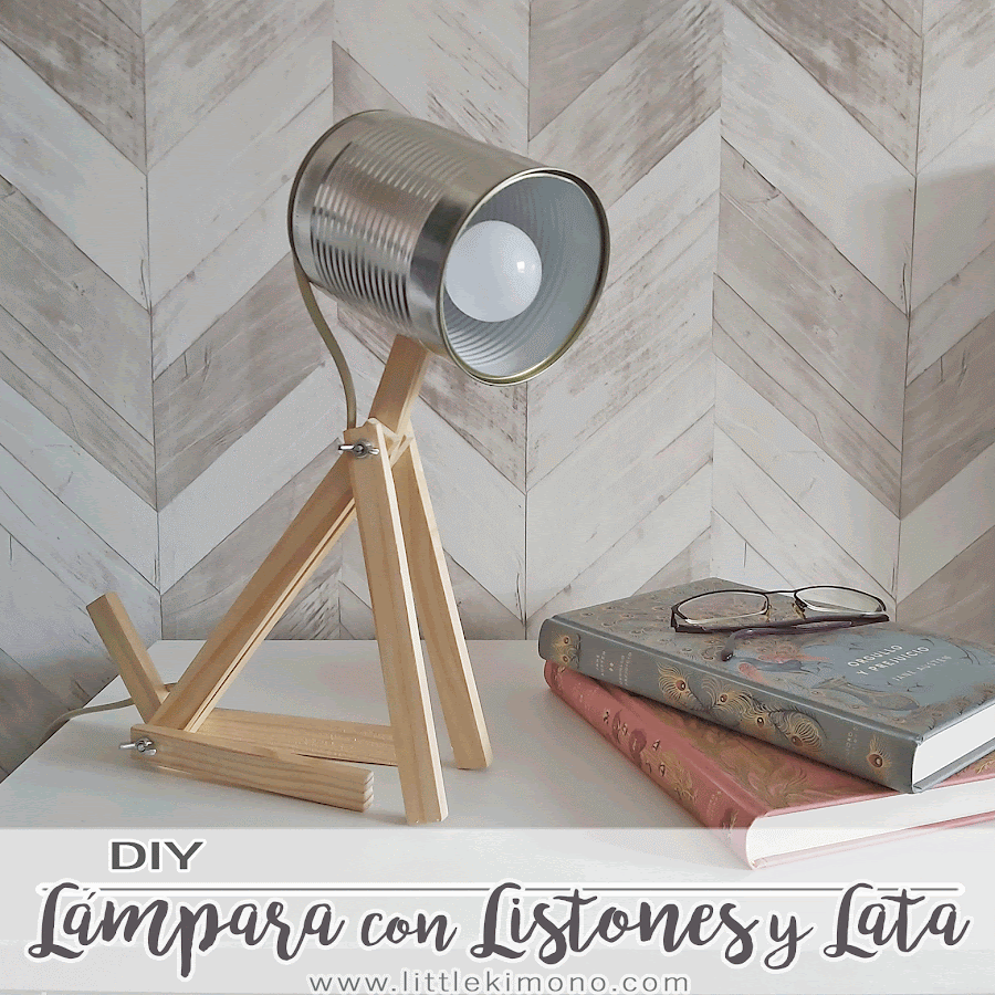 Se trata de una lámpara perrito usando listones de madera y una lata reciclada.
