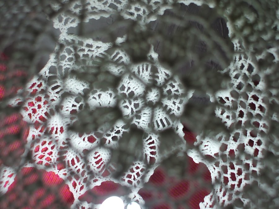 Con algunos paños de ganchillo que ya no usaba, de esos que tenia guardados he hecho una lámpara de mesa.
