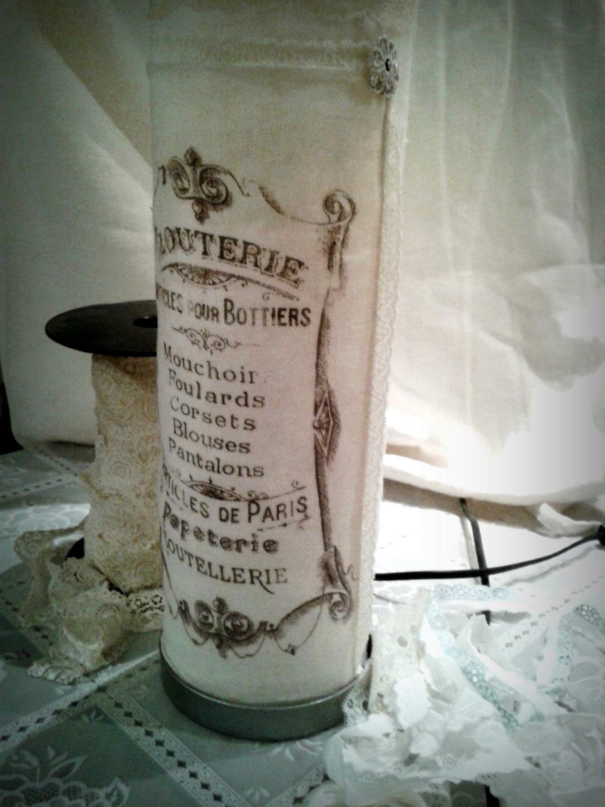 El cilindro lo he forrado de tela y en un retal de la misma tela he hecho una transferencia de esta imagen: