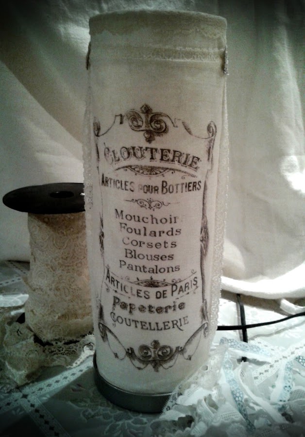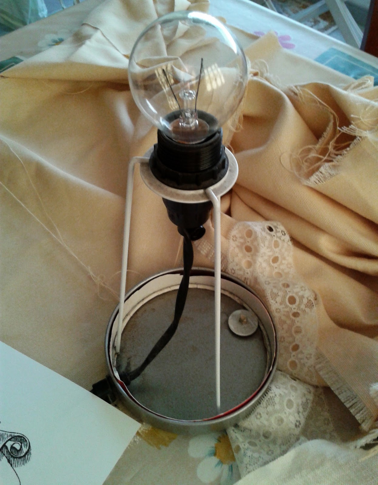 Luego en el borde de arriba de la lámpara he puesto otra puntilla. Este es el resultado final: