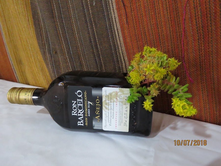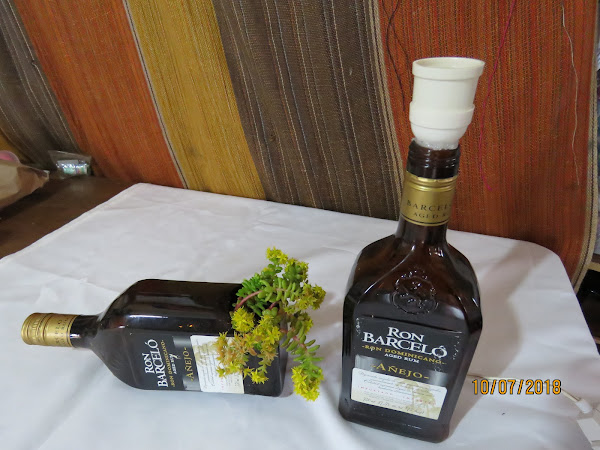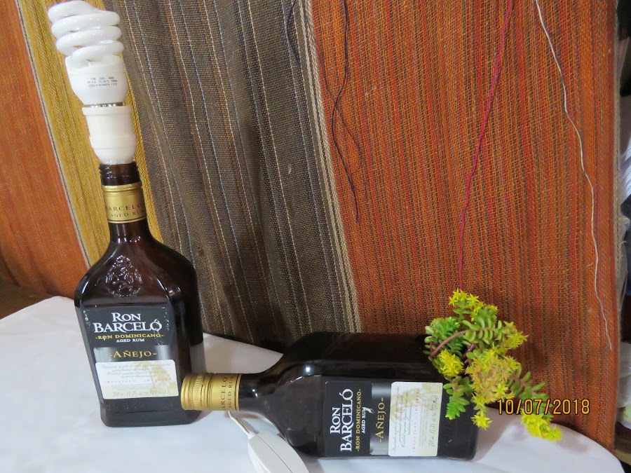 Lámpara y macetero en una botella de vidrio