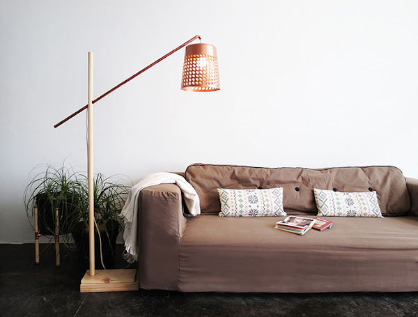 Fuente Craftbits También podéis fabricar una moderna lámpara de suelo como la que nos enseña a hacer Ohohblog. Está hecha, ni más ni menos, que con una papelera de plástico. Esta chica tiene una imaginación desbordante. Me encanta como queda porque parece una lámpara de diseñador pero 100 veces más barata. Ha sabido combinar a la perfección el cobre y la madera. Desde luego merece la pena intentar llevar a cabo este DIY,
