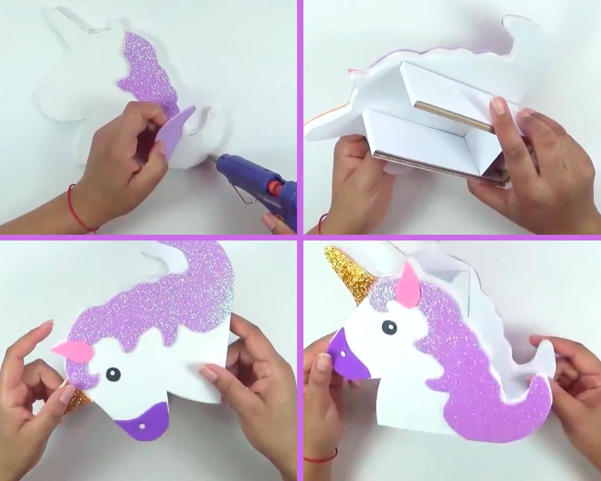 Corta una tira de goma eva y cubre el canto de los unicornios.