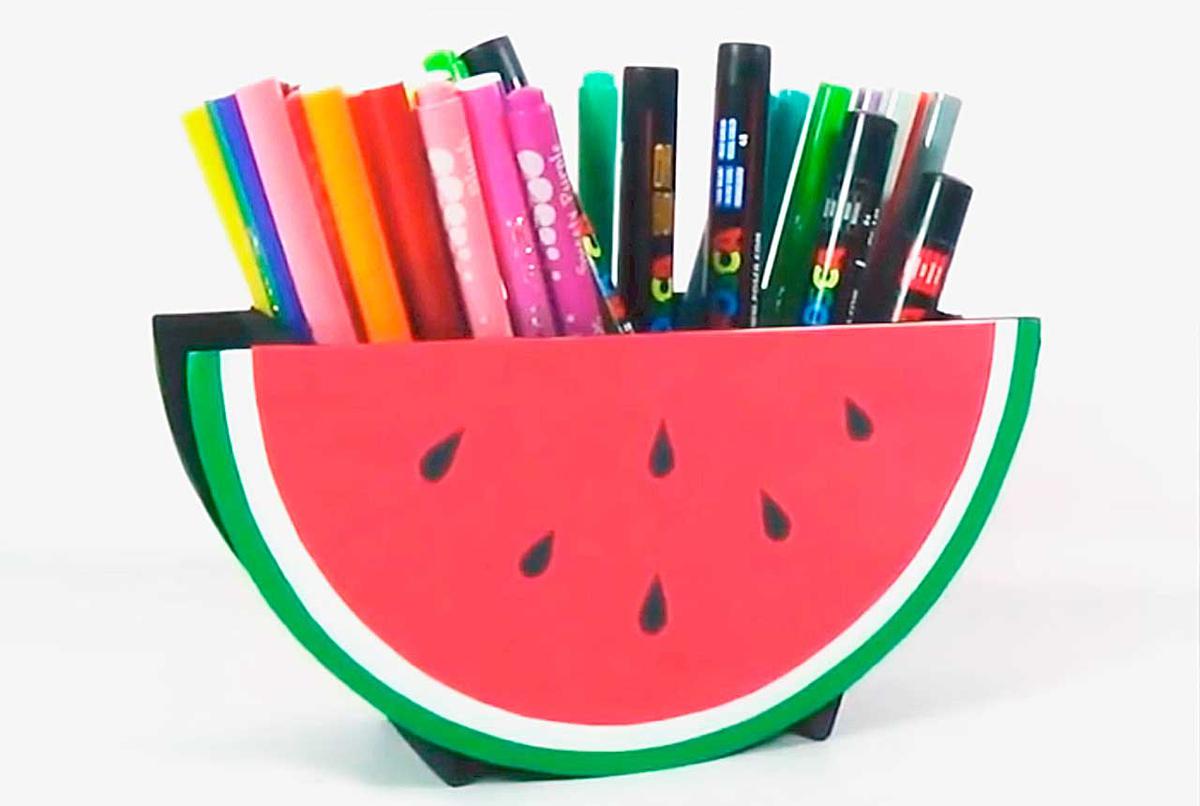 Así te queda el lapicero en forma de sandía. Puedes hacer un limón o naranja.