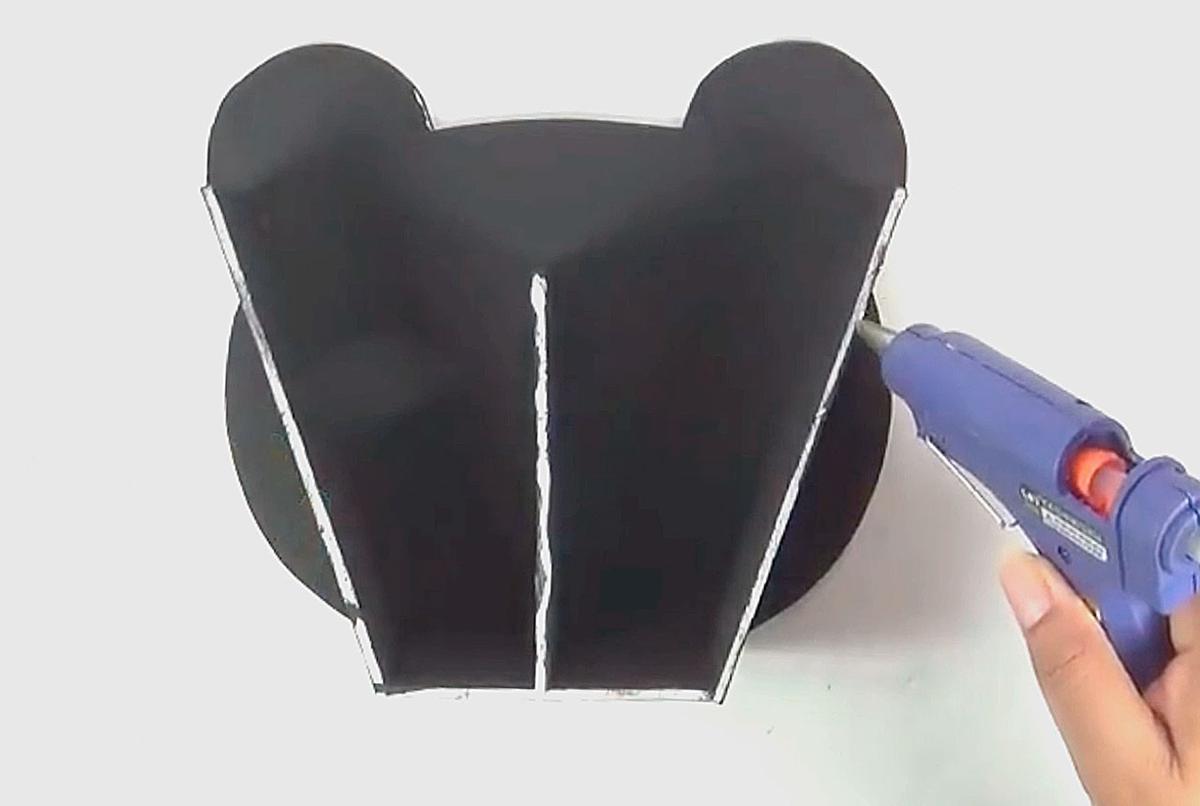 Pegar las dos piezas y decorar la cara, cortando las piezas con la plantilla.