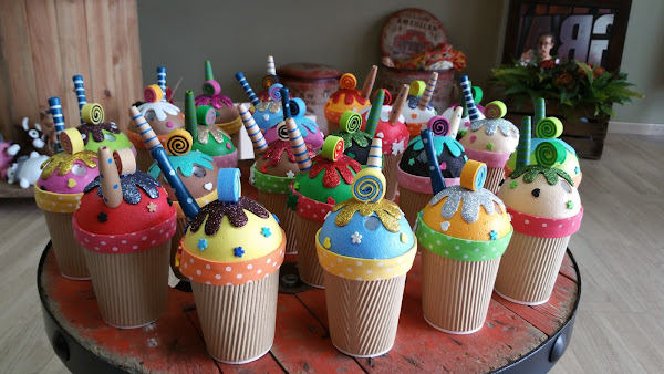 Son todos hechos de goma eva, la diversidad es tan amplia como imaginación tengamos, podemos jugar con formas, colores y materiales.Poner iniciales o nombres completos...ideales como detalle de comunión para los niños y además dentro le podemos meter chuches.