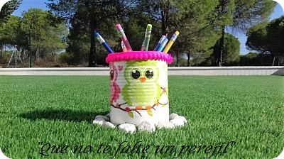 Hoy os enseño lo que hice con latas de conserva de tomate. Sí de tomate, de esas de 800 g. que más de una vez abrimos en casa y después van directas a la basura. Pues bien, se han convertido en preciosos lapiceros.