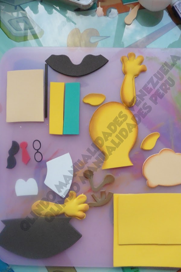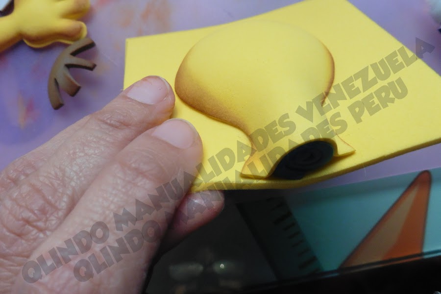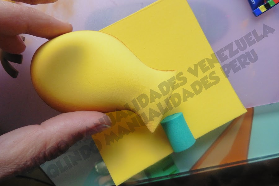 1. Cortamos las piezas de acuerdo a como se nos indica en el molde en el color del microporoso correspondiente.Igualmente sombreamos las piezas con la técnica de su preferencia podría ser la técnica del pincel seco, sombreado con tiza pastel o sombreado con plumones.