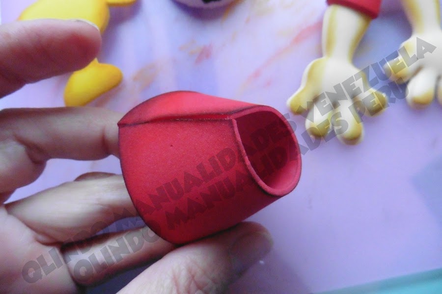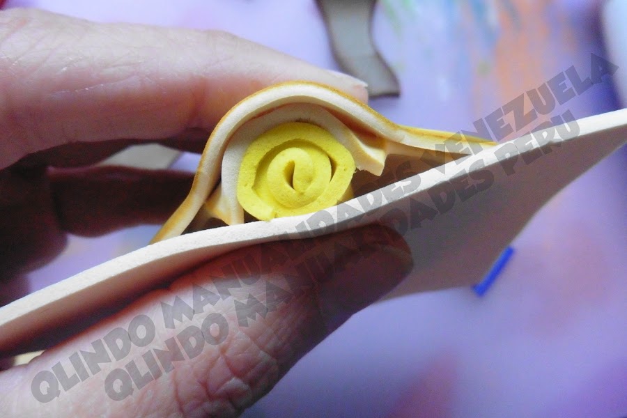 5. Observa como queda la cabecita pegada y el rollito por dentro para luego pegarla sobre la base del cuerpo.