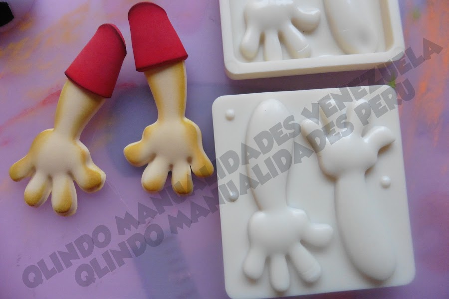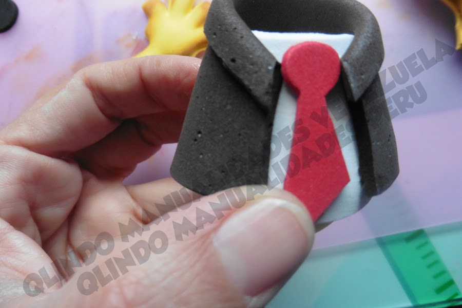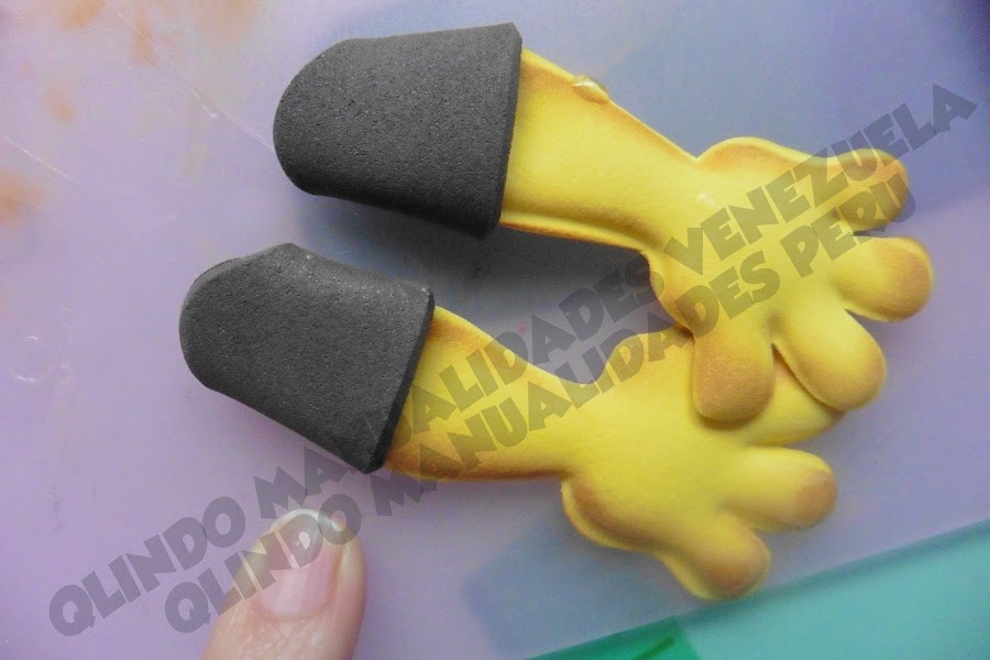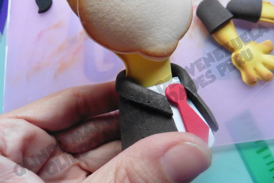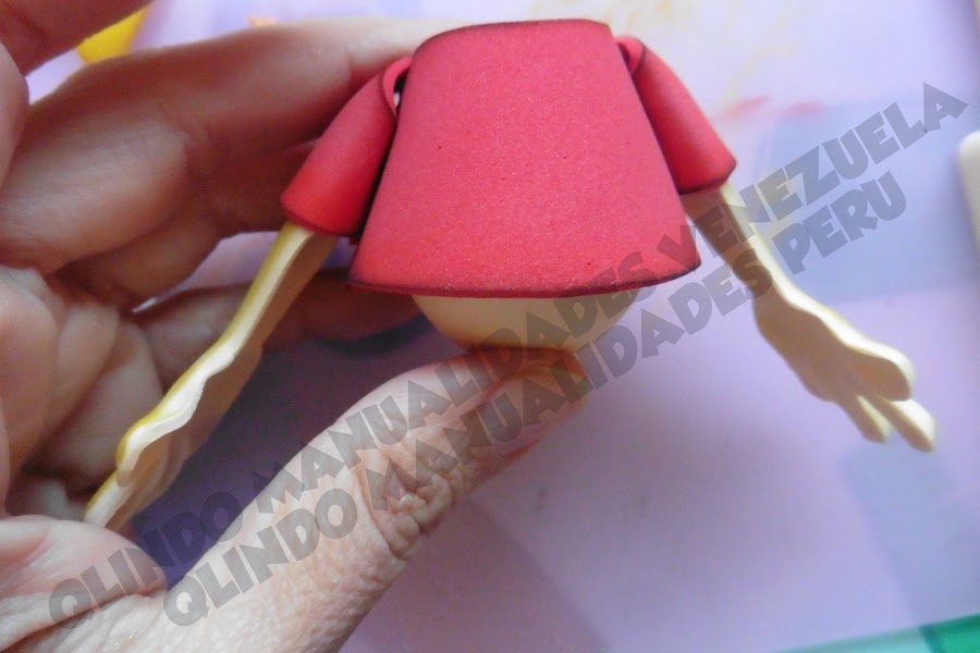 8. Termoformamos los brazitos y pegamos en el extremo las mangas como se observa en la foto.