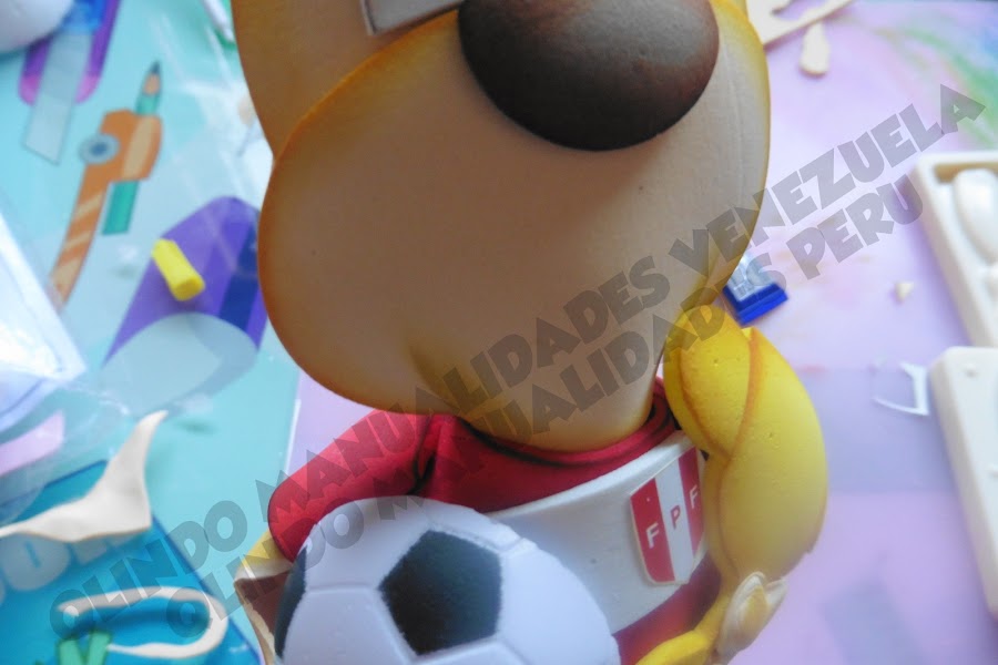 18. Observa en la foto de abajo como queda nuestro perrito futbolista, es muy fácil de hacer y con los moldes que te obsequio al final de este post podrás hacerlo sin ninguna complicación.
