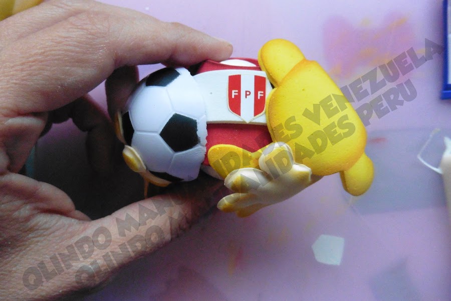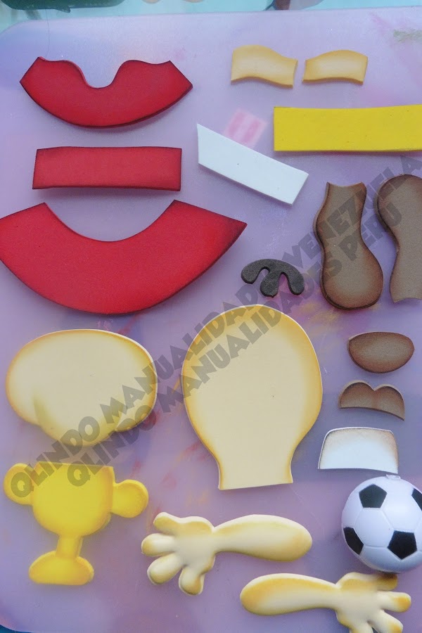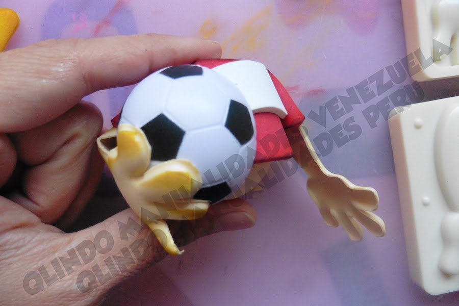 14. Asi mismo pegamos en su otro brazito la copa y el stiker correspondiente al equipo de futbol.