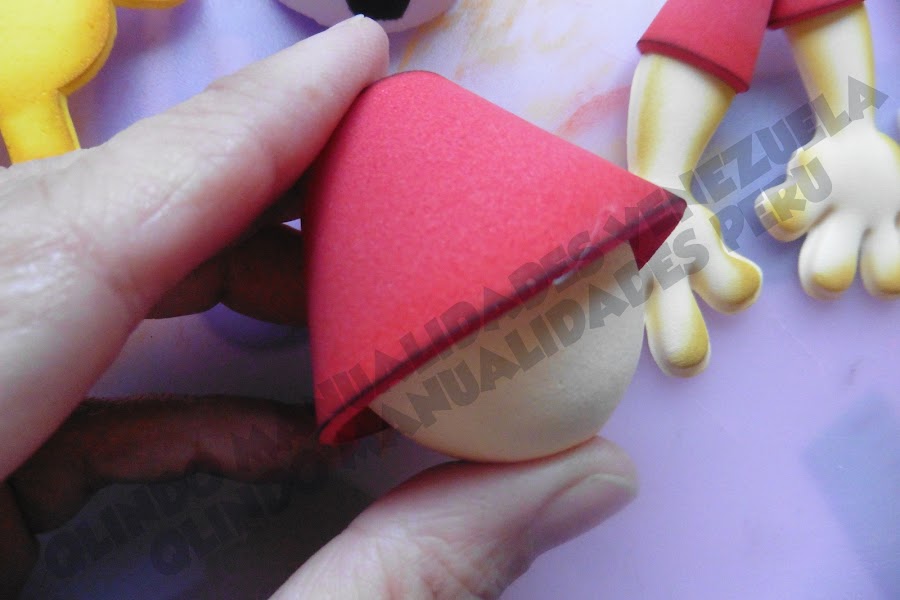 5. Ahora pegamos la cabeza sobre el la base anterior.