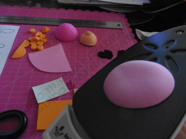 Para el sombrero: termoforma la base rosa utilizando la plancha.
