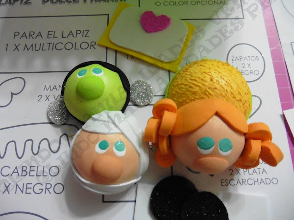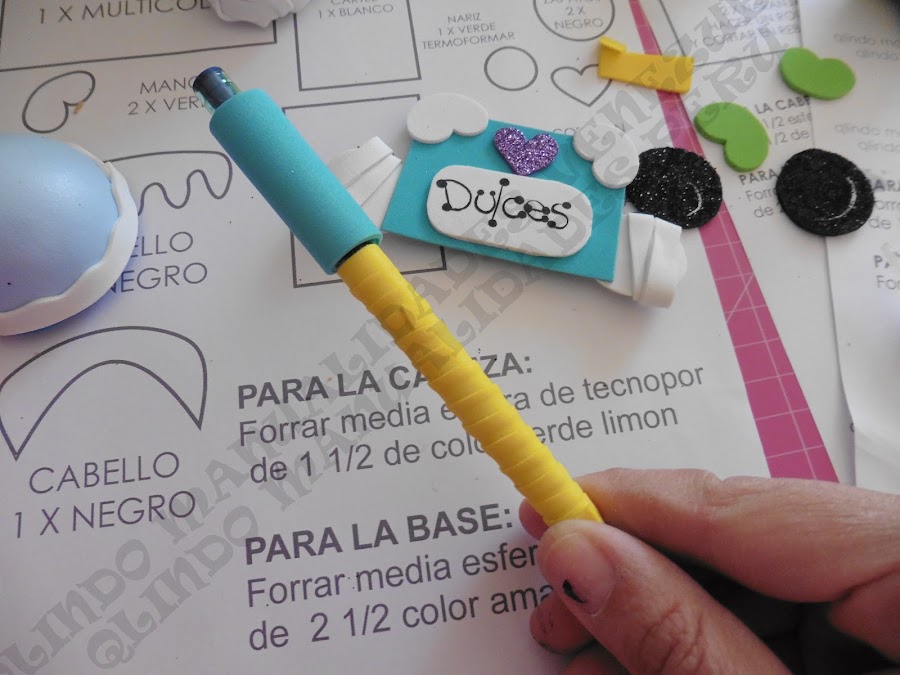 Pega la brujita al lapicero y así queda listo, los colores pueden variar todo dependerá de tu gusto.