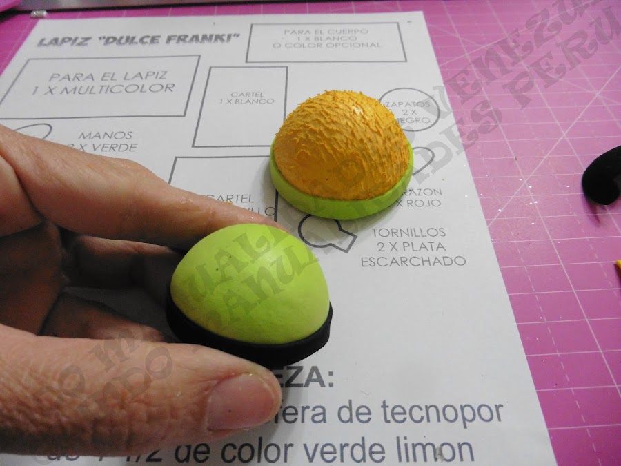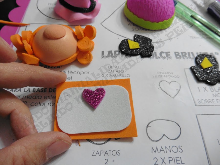 Para la base utilicé microporoso amarillo y decore con una tirita verde limon.