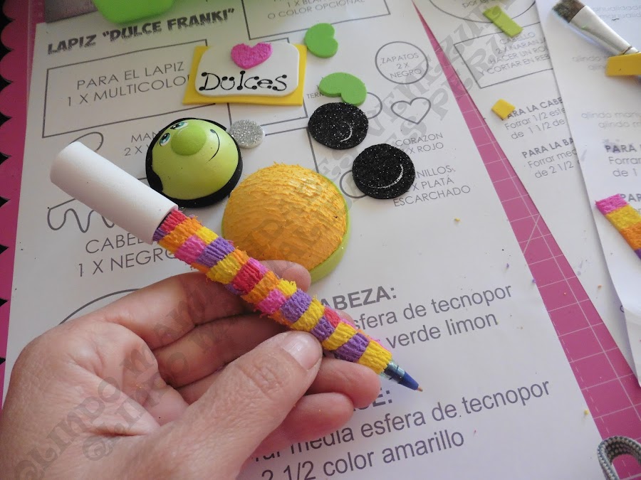 Forramos el lapicero, observa en la foto como ha quedado, los colores pueden variar.