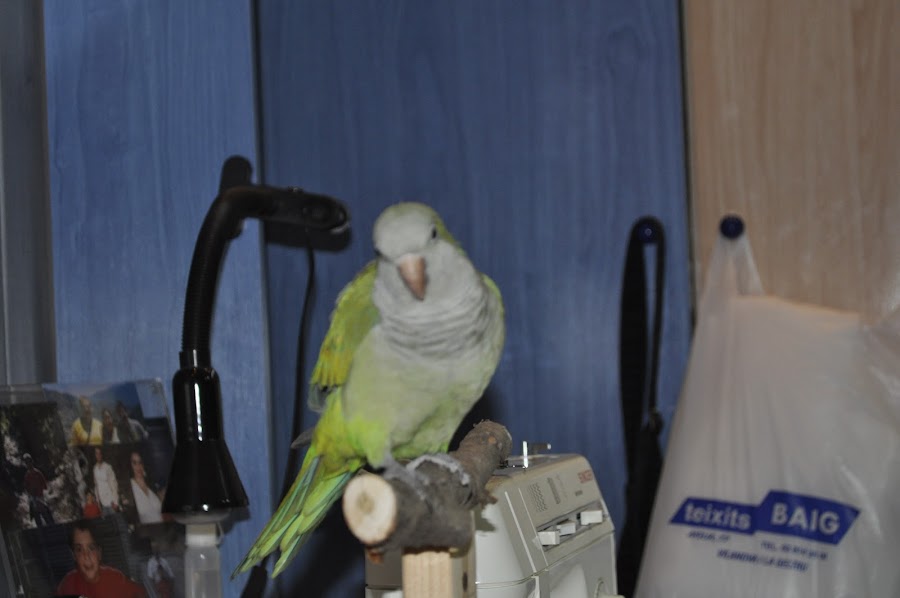 Ahora que está más tranquila la queremos llevar al veterinario para que le quite las plumas para que le vuelvan a crecer,aqui la podeis ver que le faltan las plumas que estan cortadas de tajo.