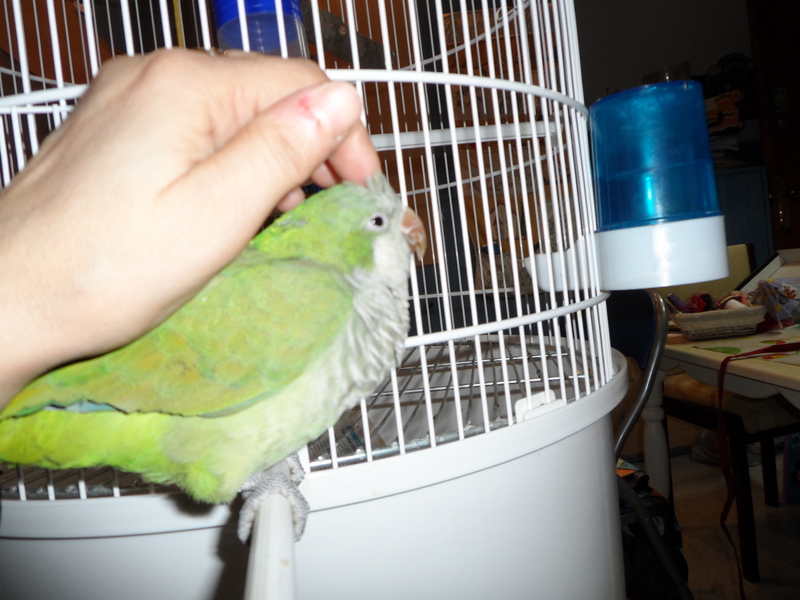 Nos hemos pasado tres meses que apenas nos podiamos acercar a ella,pero le di su espacio,vió que no pasaba nada,con mucha paciencia y cariño y ahora es de lo más cariñosa,te da besitos y te arregla el pelo cuando te acercas.Nunca me ha picado,cuando le das algo lo coge con el máximo cuidado para no hacerte daño.