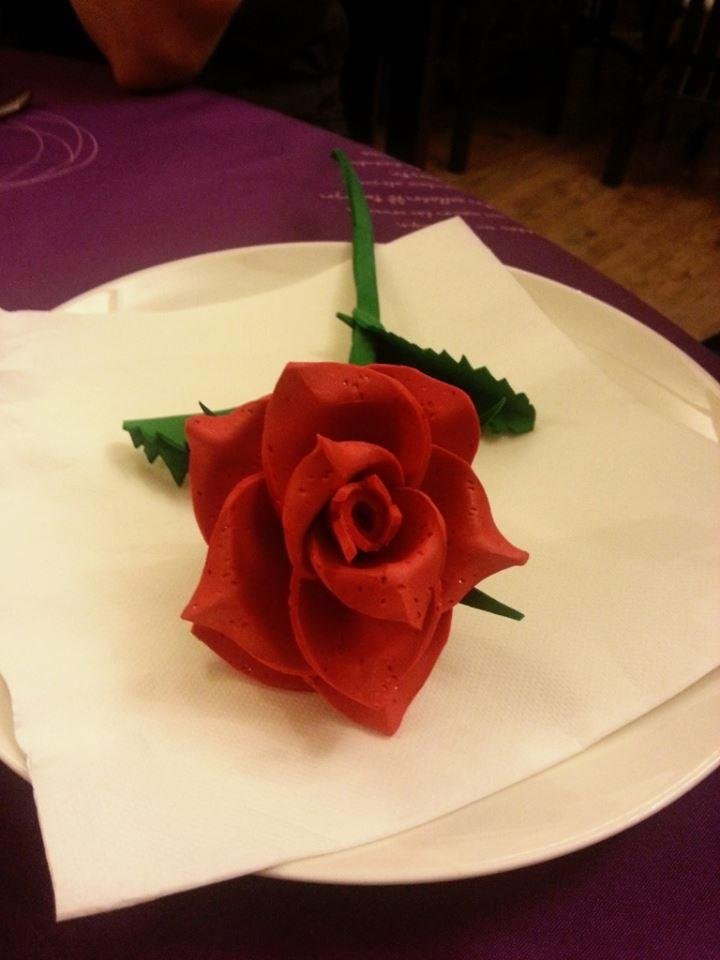 4 Mirta Hartung- 94 votos. Rosa roja hecha con goma eva.