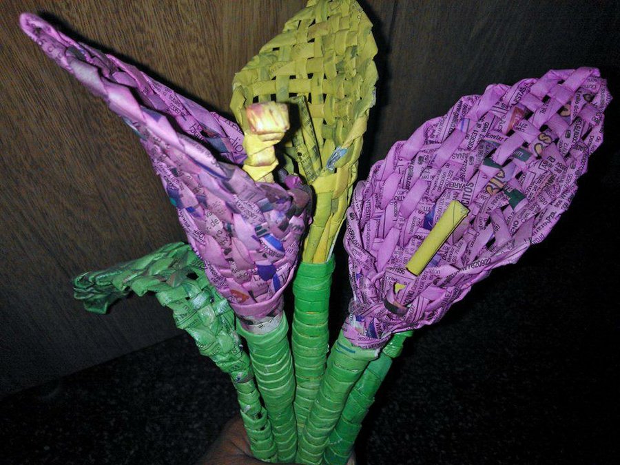 10 Silvia Rocha- 39 votos. Calas hechas con hojas de periódicos.