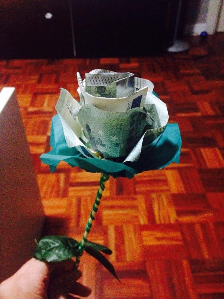 13 Paula García Frías- 36 votos. Flor hecha con billetes para regalar en una boda.