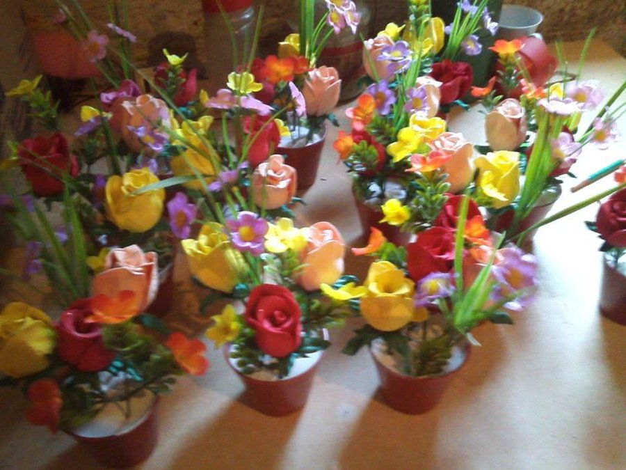 18 Sonia Mol- 28 votos. Macetas decoradas con flores artificiales.