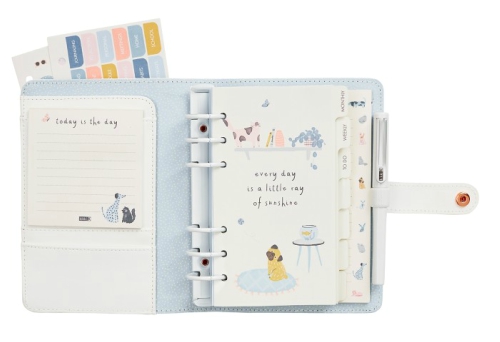 Aun que es de espiral tiene una organización muy parecida a una agenda de anilla con separadores y demás detalles. Tienes 17 meses, desde agosto de este año a diciembre de 2019, calendario mensual y semanal, apartado para notas, contactos y fechas importantes y con 2 hojas de pegatinas.