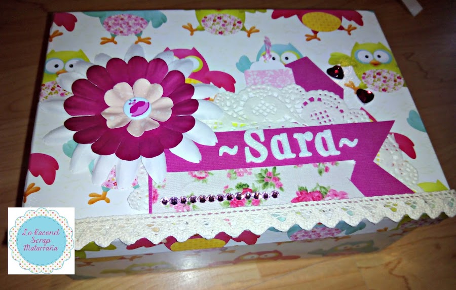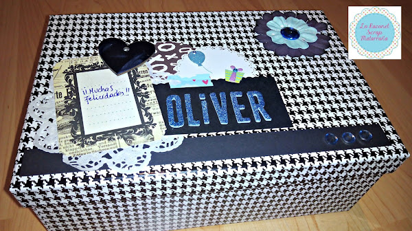 Por eso decidimos, guardar el regalito en unas bonitas cajas scraperas personalizadas con su nombre, para que puedan en unos añitos guardar sus "tesoros"!!!!