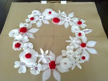 Hola, está visto que en esta vida es mejor no hablar. Si antes comento que me algunas personas me dicen que cuando terminen un trabajo me mandarán las fotos para verlos y no me las mandan, va Inés Herrera y me manda las fotos de sus coronas de navidad elegidas entre algunas que os enseñé, la de fieltro de color blanco de Purl Beer y la de papel