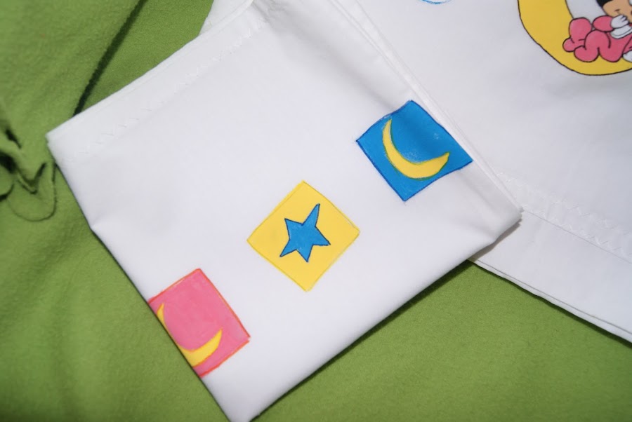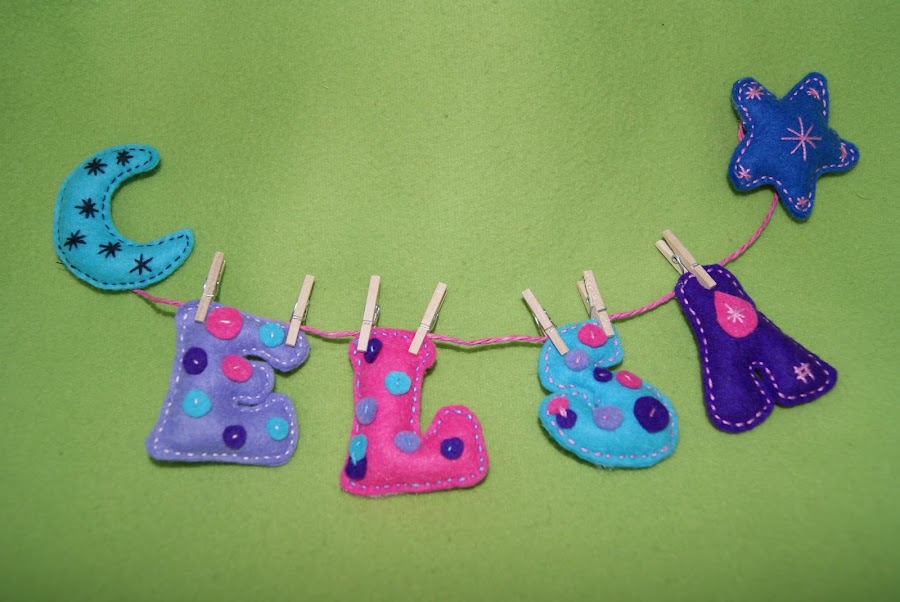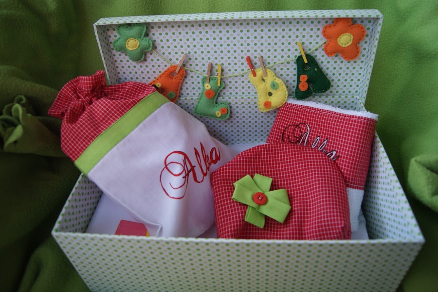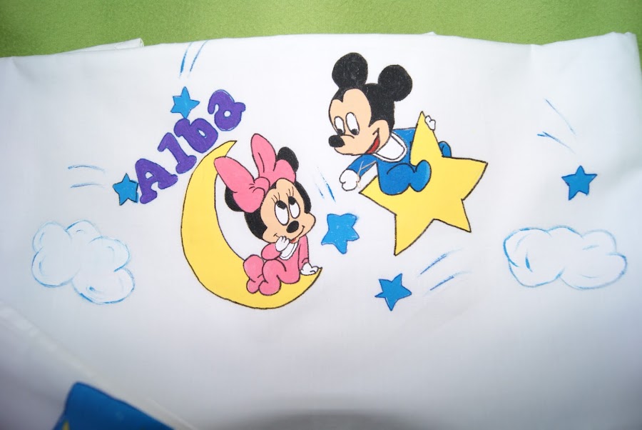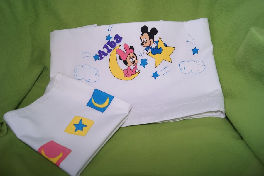 Esta todo hecho a mano, la toalla, la bolsa, el necese,r las sabanas, y luego pintado los nombres son con fieltro
