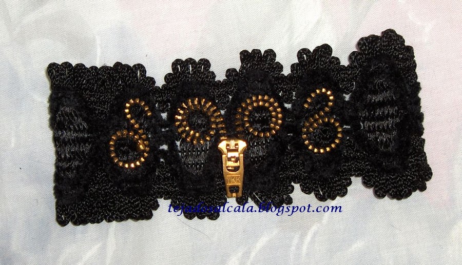Las dos cosas junto con esta pulsera hecha con encaje y cremallera fueron un regalo para mi hermana. Creo que le han gustado. Yo se lo hice con mucho cariño.