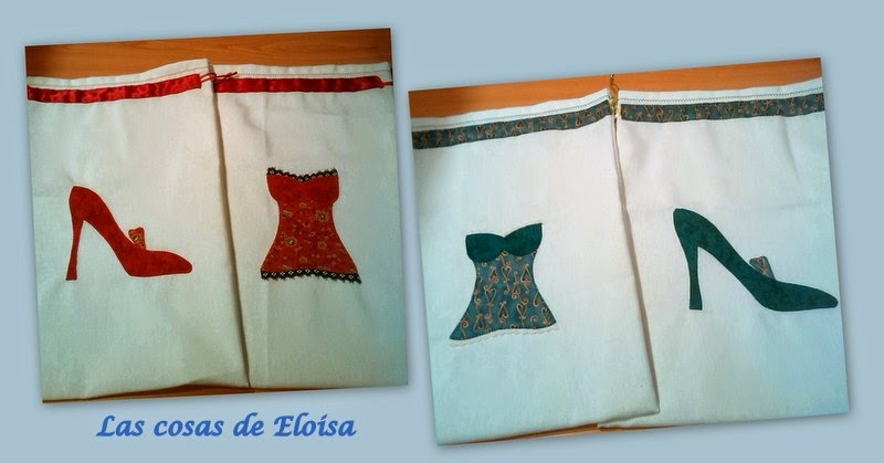 Estas son unas bolsas que hice que son para cuando vas de viaje meter los zapatos o las zapatillas y la ropa interior y así después son mas fáciles de buscar por la maleta y no se mezcla con lo demás.