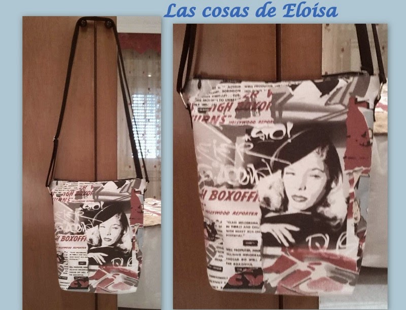 Ahora estoy haciendo uno para mi hija que lo quiere para ahora el buen tiempo,es del modelo mas sencillo el de la tela en la que esta la Lauren Bacall pero la tela de las postales de Roma,ya os lo enseñaré.Un beso.