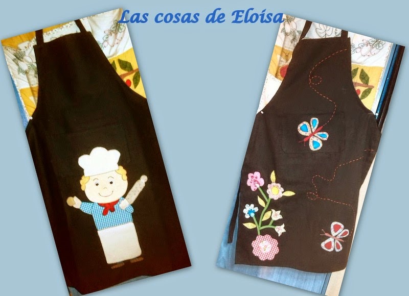 Y estos unos delantales para chico y chica con aplicaciones,lo hice para Navidad era un regalo que me pidieron que hiciera y quedaron bastante cucos,los encuentro muy divertidos.